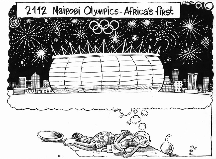Gado’s talent for drawing, coupled with a voracious interest in the news, led him to cartooning at an early age. Studying architecture at the university in Dar-es-Salam did not quite hold his attention, and he landed a job at The Daily Nation, Kenya’s leading daily and one of the largest newspapers in Africa. He took off for Nairobi, young and alone but eager to learn. He felt he was lucky to find mentors and an environment that was open to his ideas and creativity.