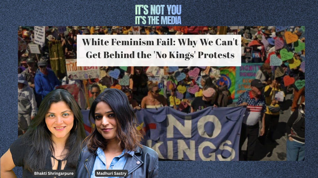 Bhakti Shringarpure and Madhuri Sastry unpack the ways in which the “No Kings” protests were anchored in mainstream, white and liberal feminist ideas. They ask why there was no popular interest in protesting genocide in Palestine and analyze the rampant American patriotism on display, the obsession with aesthetics as posters about royalty, crowns and the statue of liberty proliferated. The No Kings protests were mired in a nostalgia for a pre-Trump America thus operating under the delusion that previous American president were not invested in wars, imperials foreign policies and border regimes. The protests lacked any solid agendas to bringing about change and dismantling existing structures of violence.
