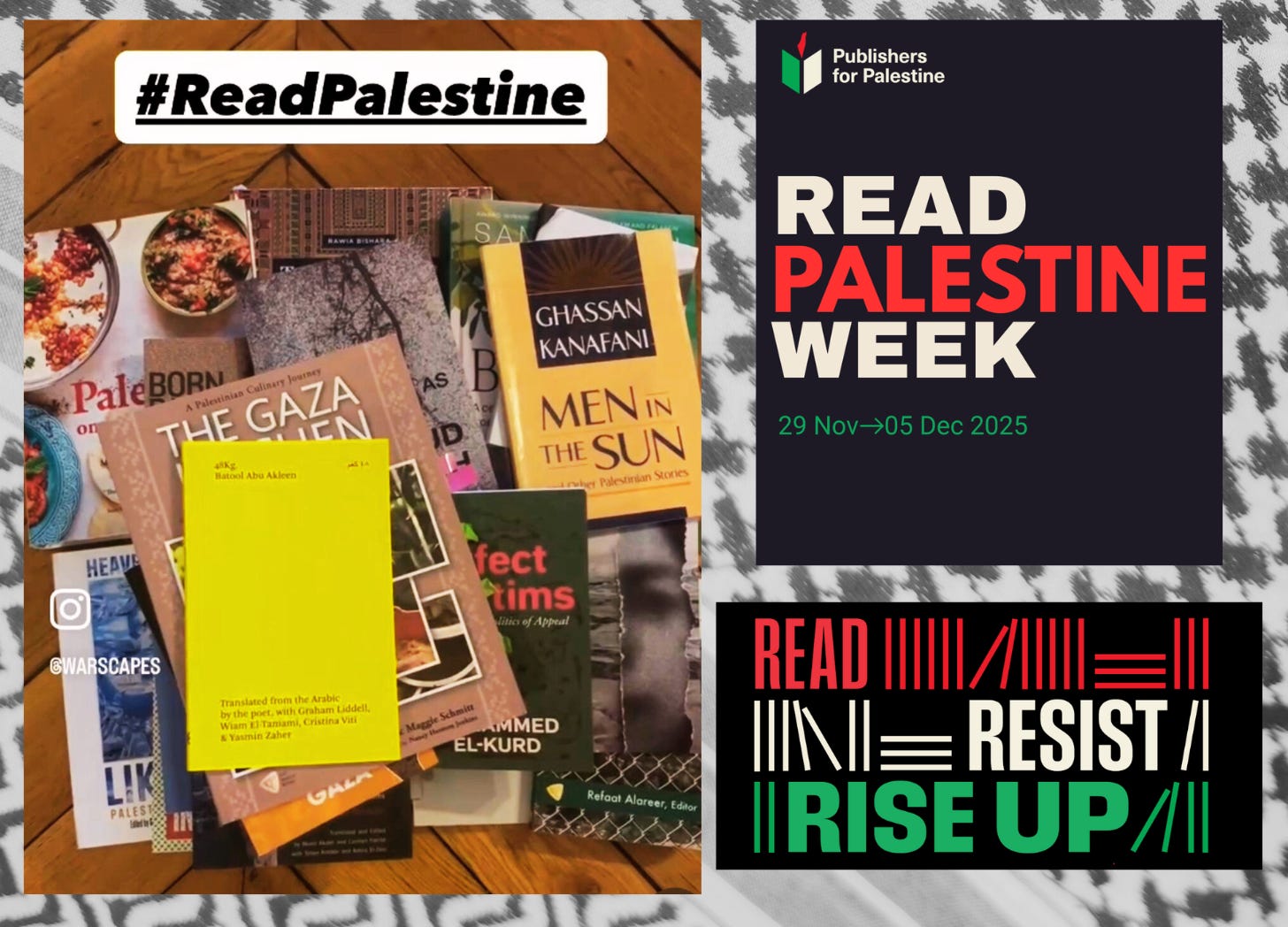 2025 is the third year of Read Palestine Week. It began in 2023 as a campaign to generate awareness about Palestine, it’s history, geography, and its culture, through the words of their own writers. As the genocide and devastation continues into a third year, people around the world are being asked to READ as part of the global resistance to the genocide of the Palestinian people.
