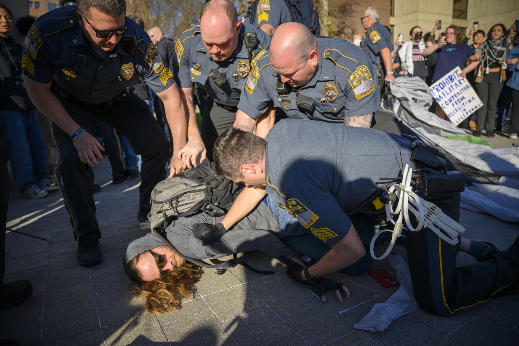 University admin and their beloved allies, campus police, would be having none of it. Zero tolerance and unchecked violence became the policy to break up encampments. The scenes of beatings, dragging, tasing, handcuffing and shoving were shocking. Universities like Columbia, Emory and UCLA bore the brunt, with police engaging in some of the most horrifying assaults on students.